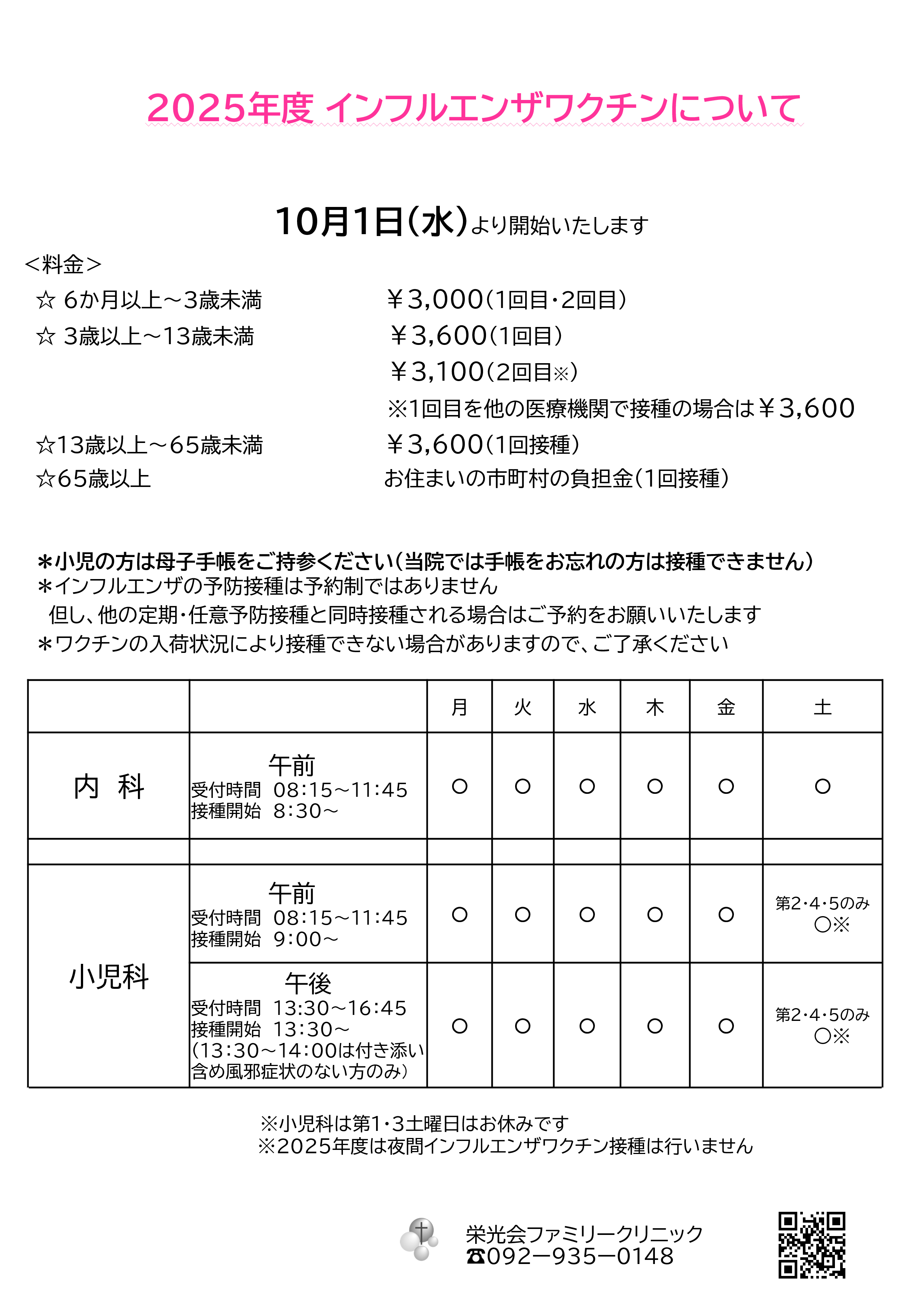 栄光会ファミリークリニック トップ > 栄光会ファミリークリニックニュース > 2025年度インフルエンザワクチンについて