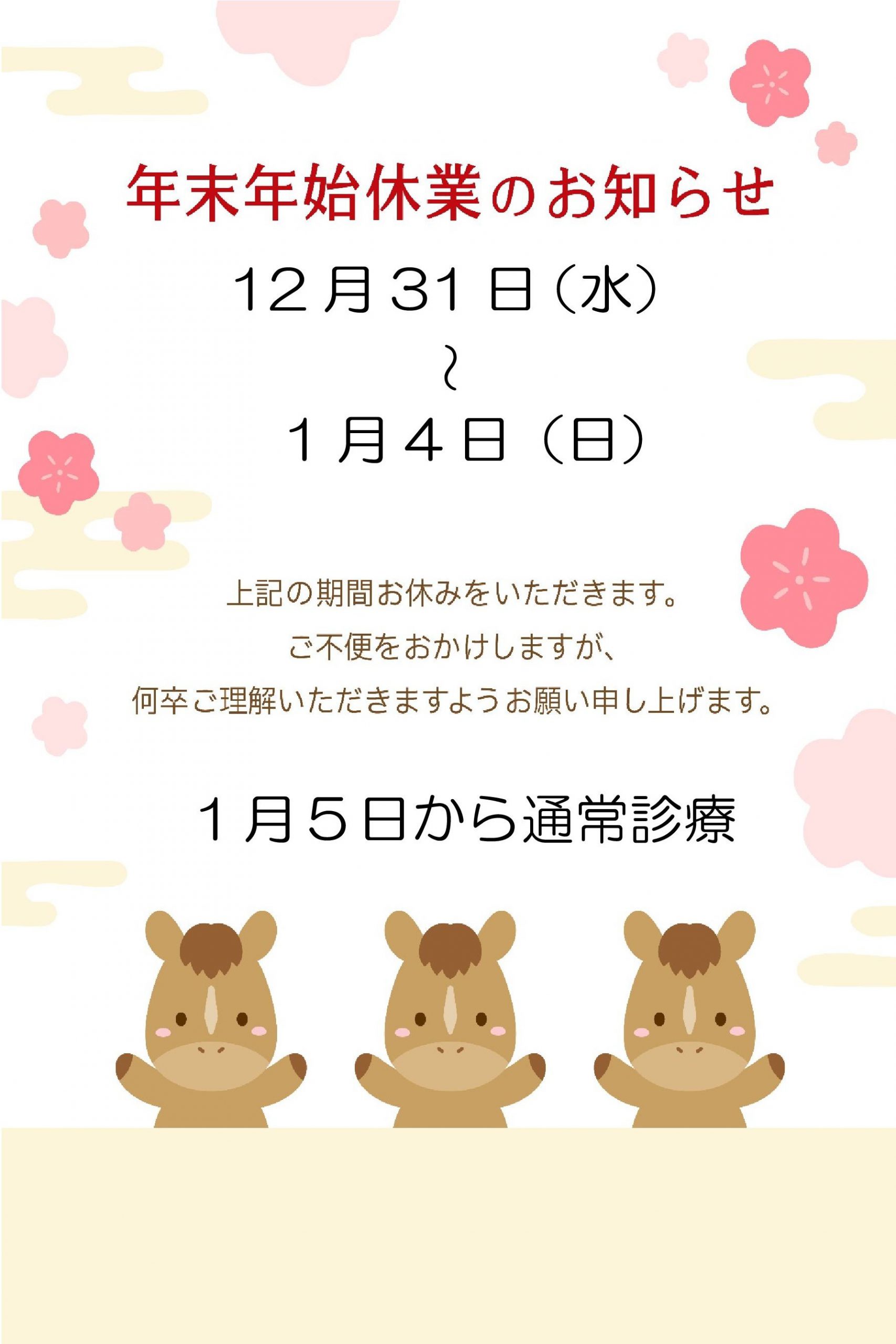 栄光会ファミリークリニック トップ > 栄光会ファミリークリニックニュース > 年末年始の診療について