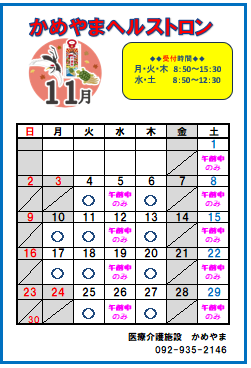 医療・介護施設かめやまトップページ > 医療・介護施設かめやまニュース > ヘルストロン11月スケジュール