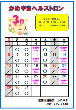 医療・介護施設かめやまトップページ > 医療・介護施設かめやまニュース > ヘルストロン3月スケジュール